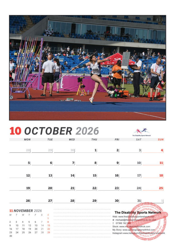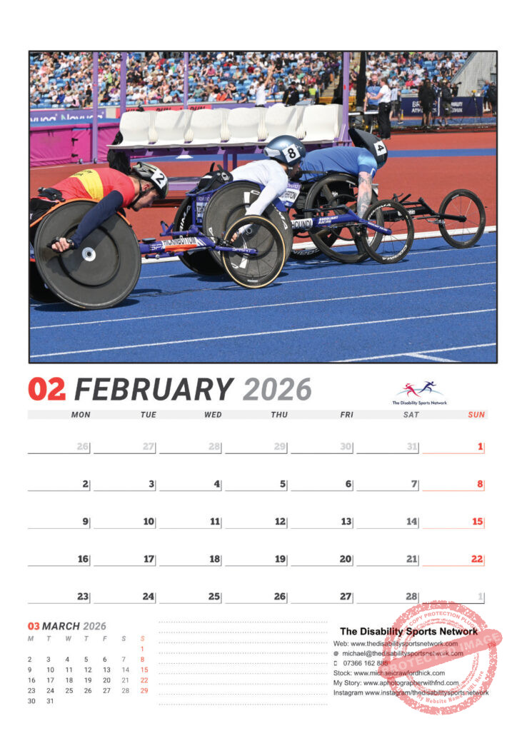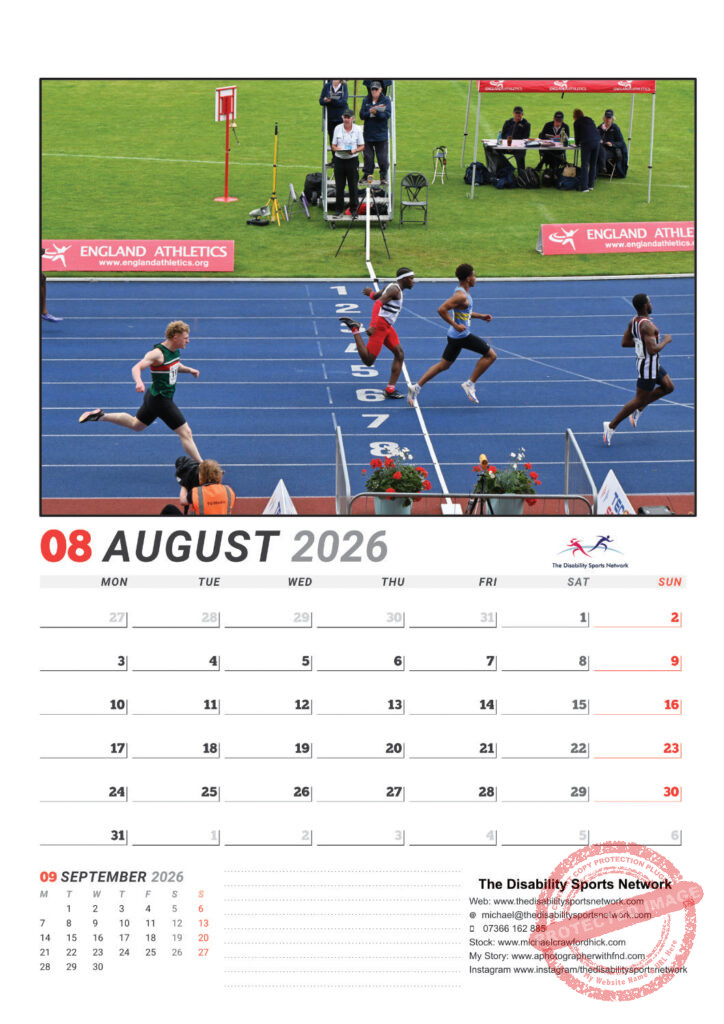 I can do custom calendars as well please email me for details min order 25 Calendars with your name on each month. michael@thedisabilitysportsnetwork.com